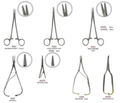 Needle holders are precision instruments designed to securely hold and guide suturing needles during surgical procedures.